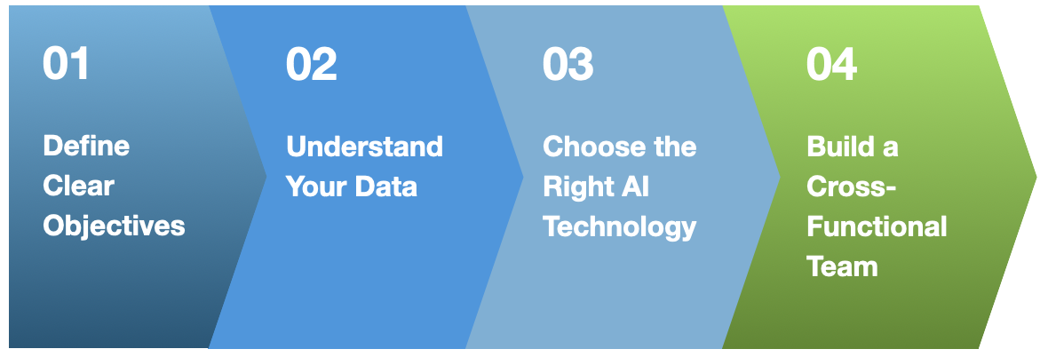 Defining your AI goals is essential. Are you aiming to automate processes, improve user experience, offer personalized recommendations, or gain insights from data? Establishing clear objectives will shape your AI strategy and guide and focus your efforts in choosing the appropriate technologies and methodologies.